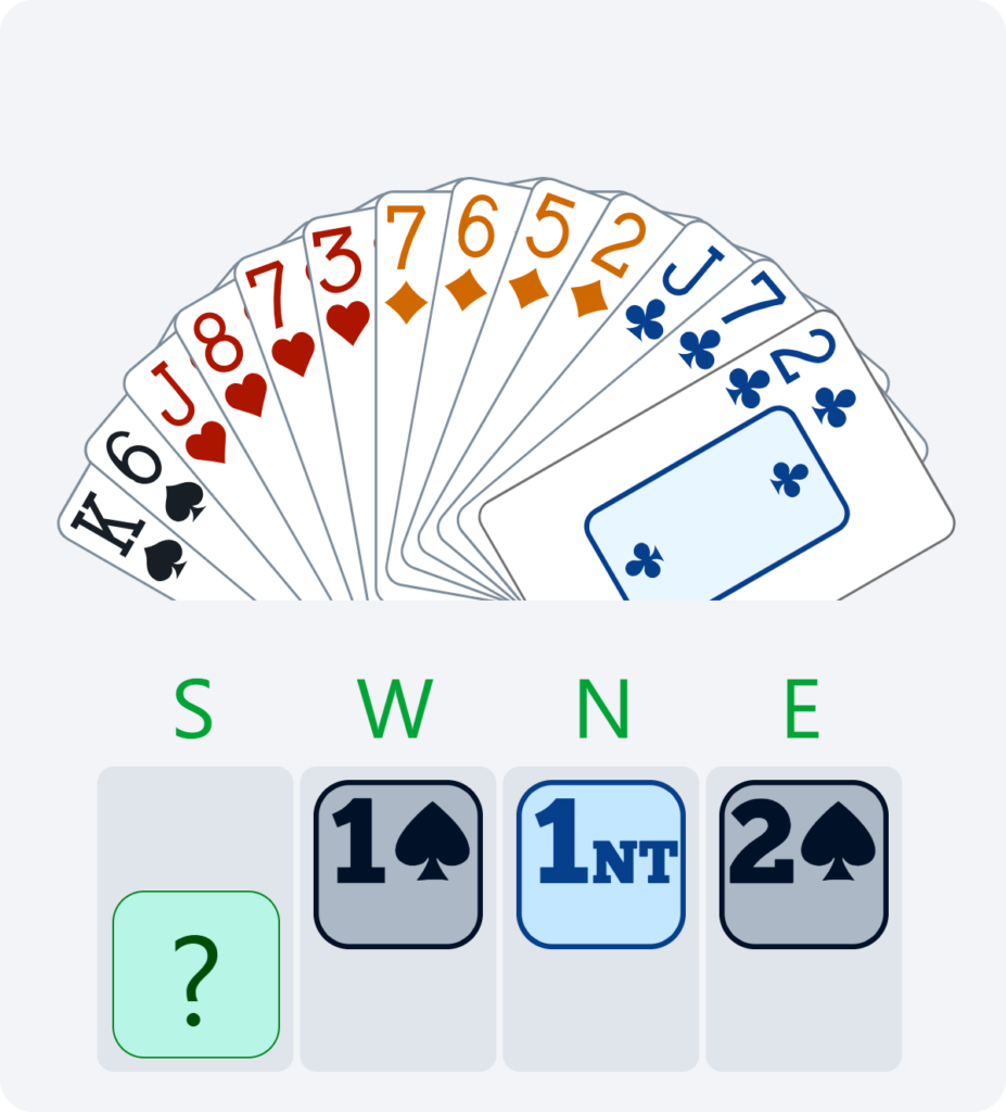Note: as I can double with weak hands, especially when short in spades, it would be dangerous to say 3NT on the other side of the table!