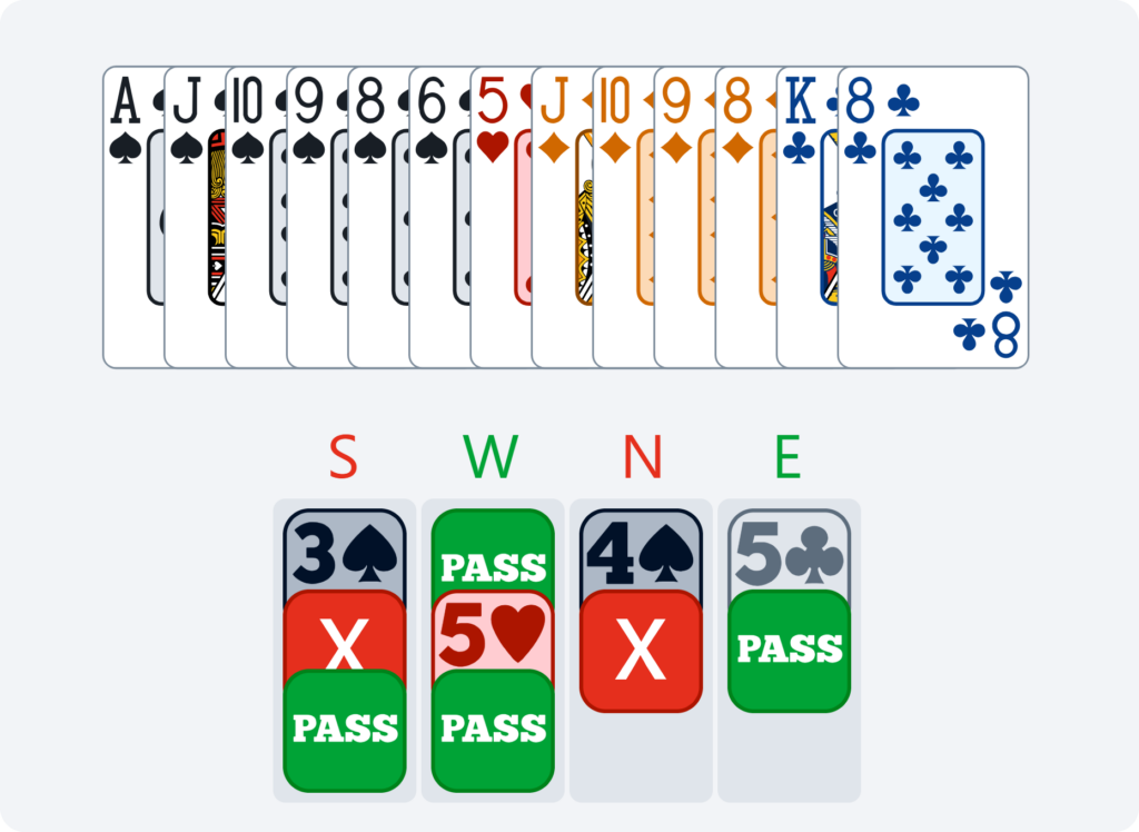 By so doing, I really helped Clara double the opponents’ 5♥! That was an excellent gain since 4♠ was going down our way.
