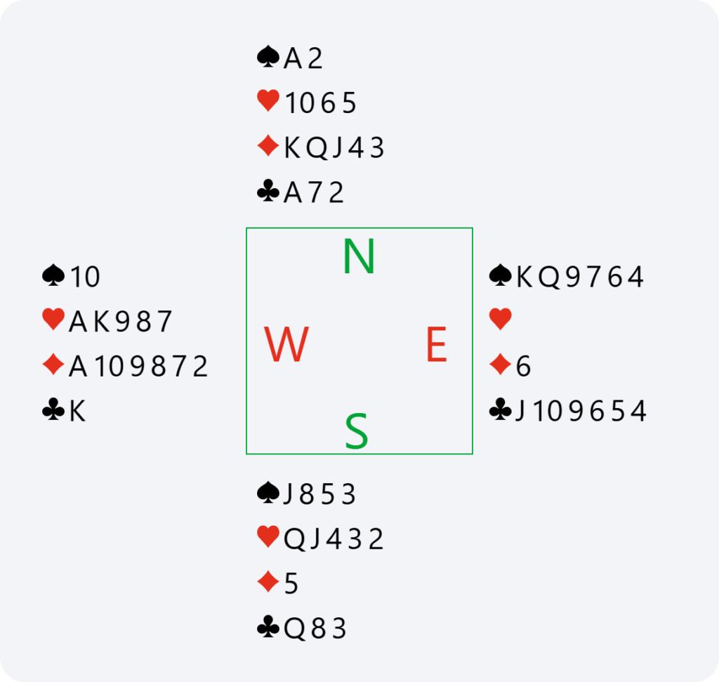 And to finish, my deal of the year with Clara: the destructive 4♦ two-suiter!