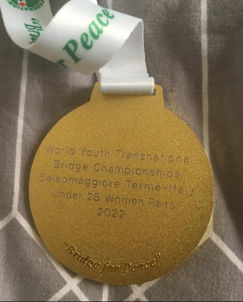 The last time I played in Salsomaggiore with Clara, it was in 2022 for the Girls’ World Transnational Pairs. We were pretty much out of the running before the final session but we clung on until the end… and after a final session of over 70%, we had clinched our first international gold medal! A complete surprise and a real joy to share that moment together 💛 Since then, we have also been Europeans champions and World vice-champions together.