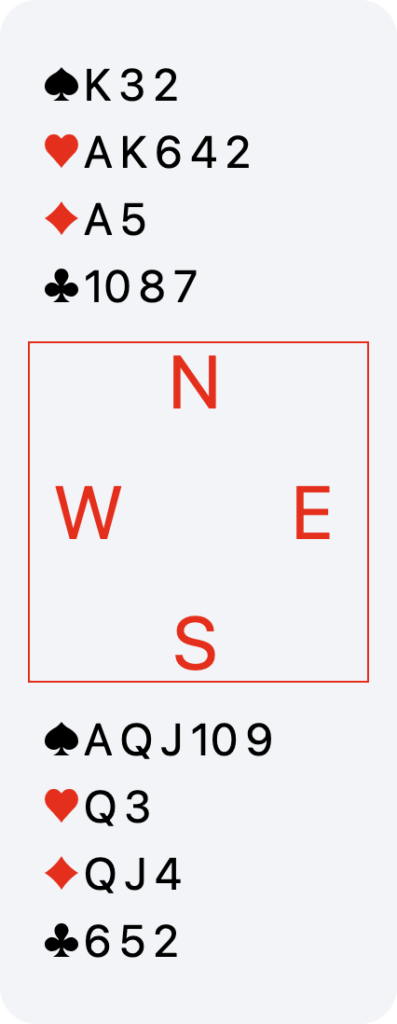 No, because West who has passed as dealer has already shown 9 HCP. This means the King of Diamonds is situated at your right. You jump up with the Ace of Diamonds and now you have to ask yourself the following question: