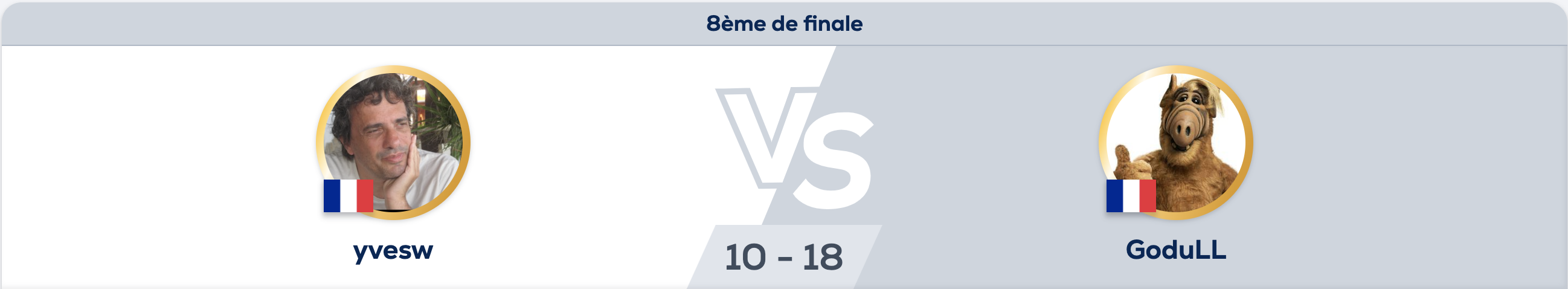 The all-French clash in the round of 16 between Yves Weisselberger, aka yvesw, and GoduLL did not disappoint. The pair both boast superb stats, with Yves averaging 65.78%, only a fraction shy of GoduLL’s 67.05%.