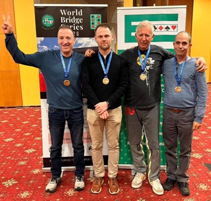 I had the pleasure of playing in the 2026 Transnational Winter Games in Prague. Our team consisted of Zack-Ginossar – top Israeli international players, Pachtman-Zatorski – a mixed Israeli-Polish pair, probably among the best pairs in the world these days; and my partner and I – Althsuler–Aviram – the old guys of the team.