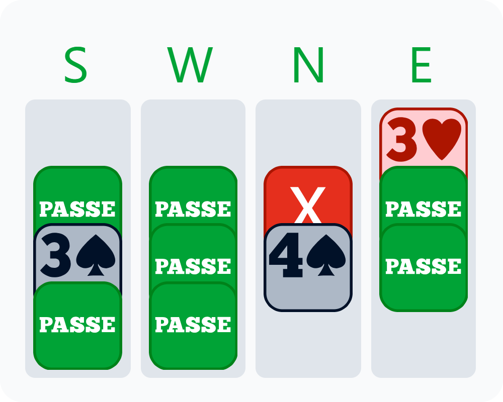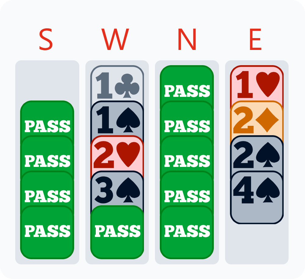 My 2♦ was xy-NT and therefore game-forcing. After that, I showed my four cards in hearts and then my three spades. Julie placed me in 4♠.