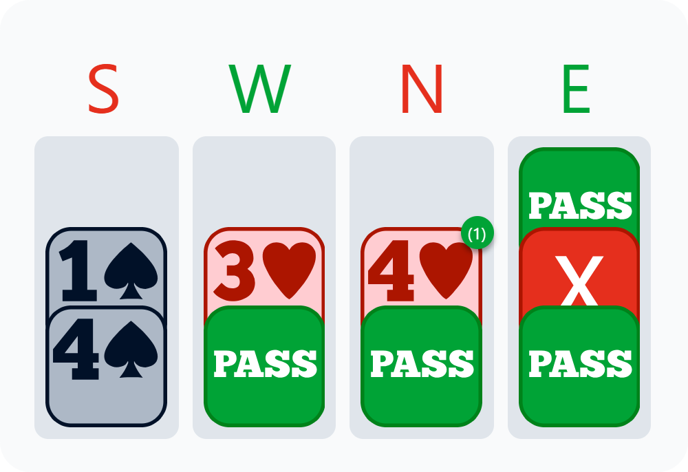 Julie and I play transfers over a 1♣ opening, so 1♥ showed spades.
