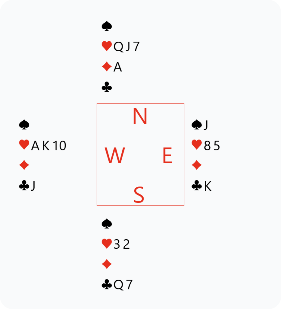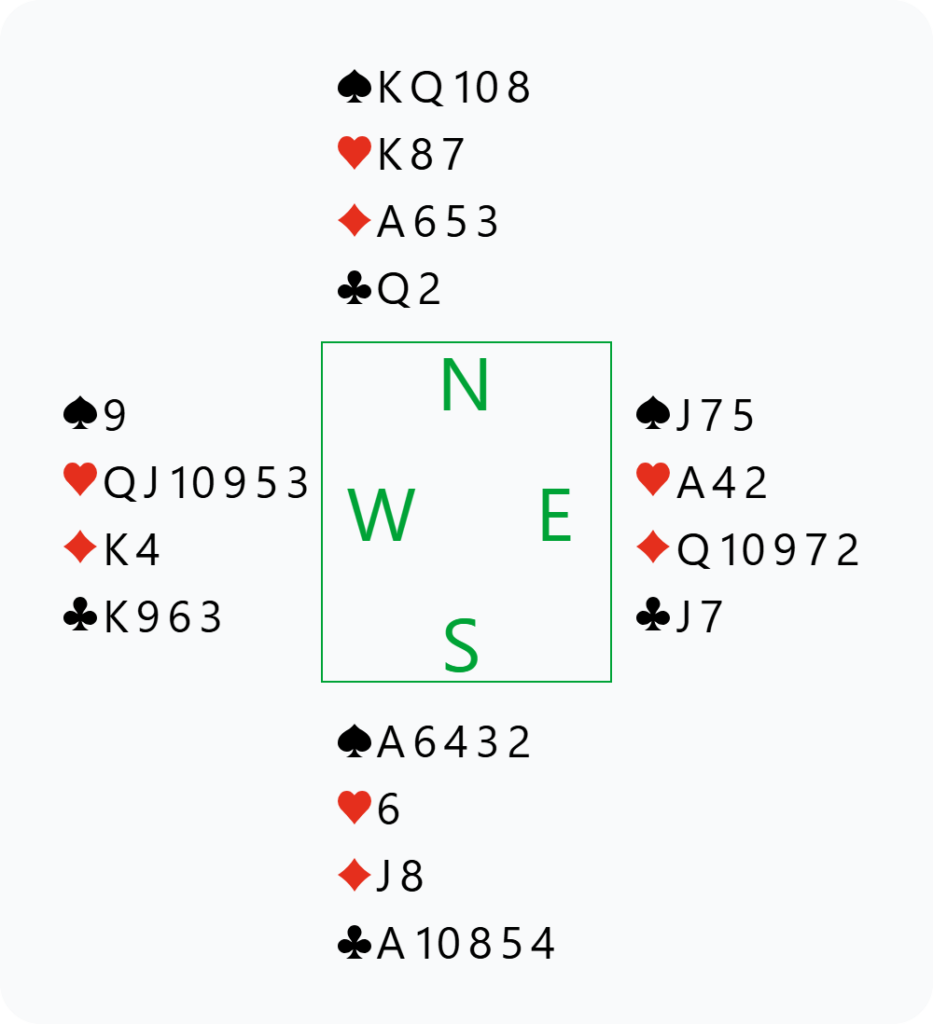 To solve this, Vicky had to play the hearts correctly. Without much thought, most players would lead a small heart to the queen after the two top diamonds. But if that loses to the king, you lose an extra heart trick if the honours are split, and the contract goes down.