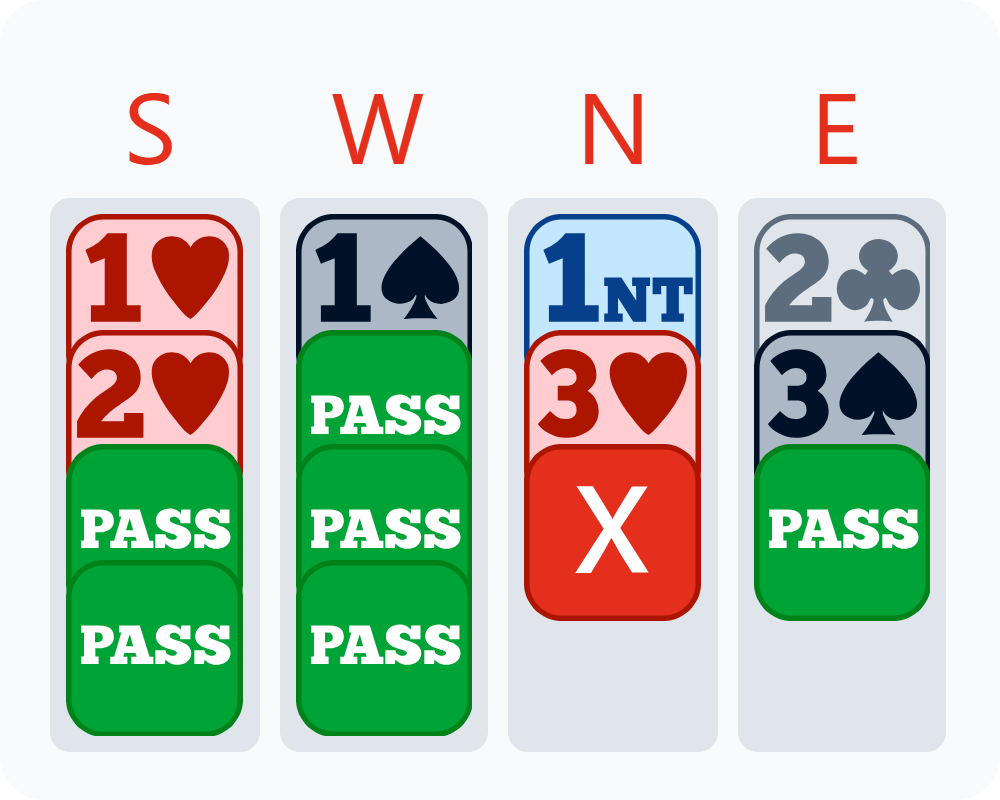 Result: 5♣X -3, or -800, while our partners score +420 playing in 4♥ =.
