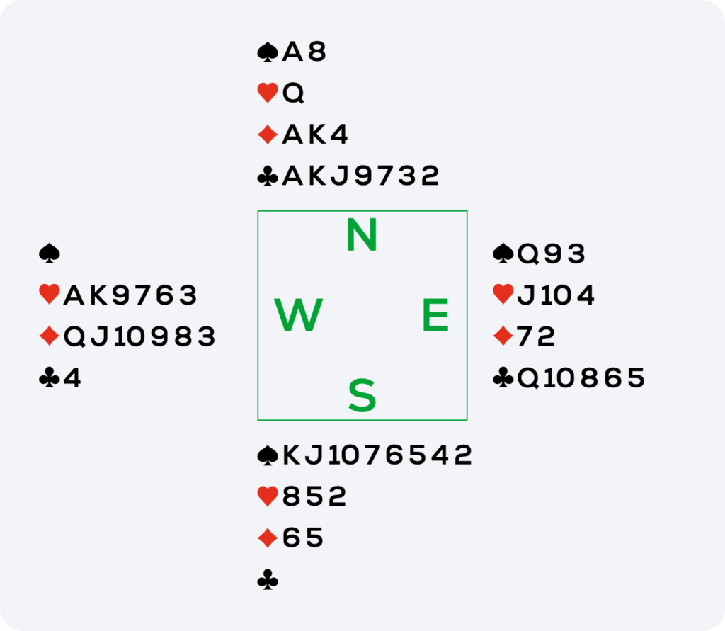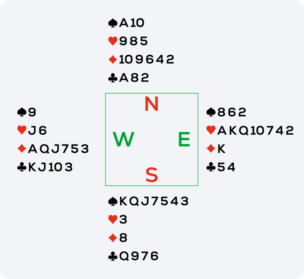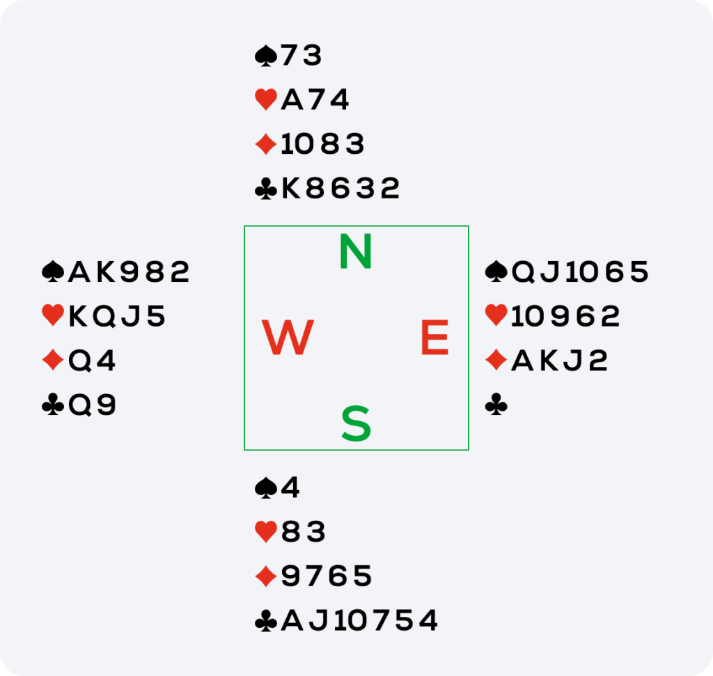 The unfortunate thing is that they didn’t make 6♠: after the lead of the ace of hearts and then the king of hearts, declarer was forced to ruff in dummy, and could therefore no longer finesse the queen-third in East. Moreover, at the other table, our team-mates played in 6♠ doubled for one down. A bad score for us!