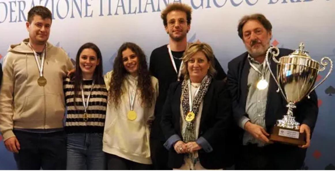 From 23 to 25 April, the final stage of the Italian Mixed Teams Cup was held in Salsomaggiore, featuring the top 32 teams that had qualified through the regional phases. My sister and I competed as part of the team captained by Antonella Novo and Ennio Nardullo, playing respectively with Federico Porta and Alessandro Gandaglia as our partners.