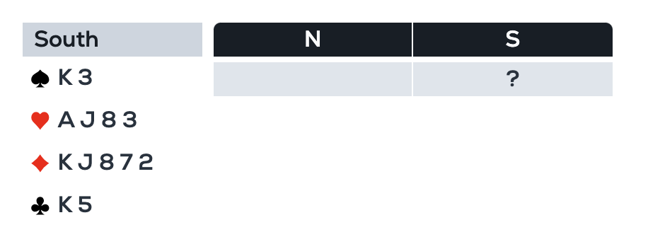 › Your only solution is to choose 2♦, a bid that could just as well come from ♠7 ♥K74 ♦AQ10873 ♣QJ5, and over which partner will have a hard time to continue bidding.