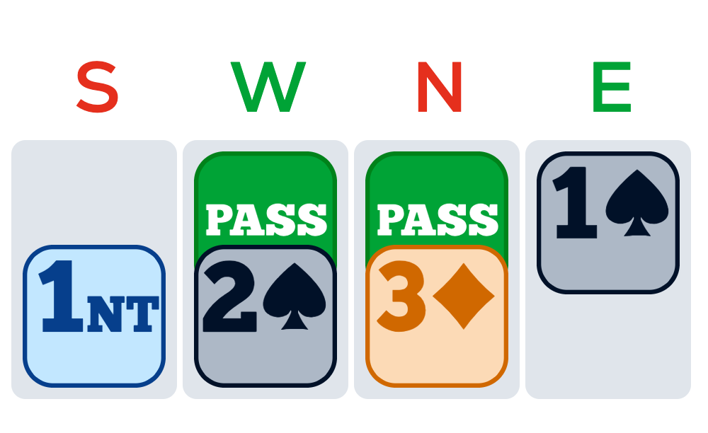After your 1NT overcall West raises his partner to 2♠, and your partner bids 3♦.