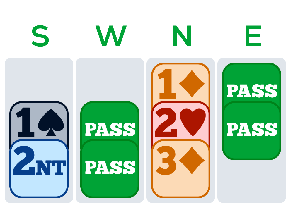 North: “Your Kings in my two suits are worth a fortune. I don’t agree with your 2NT bid, it’s well known that this is a conventional weak relay.”