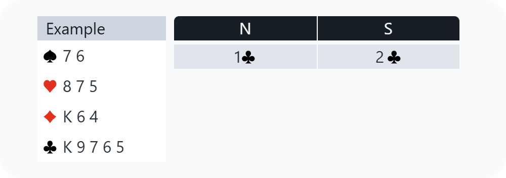 Be careful: do not automatically raise to 2♣ just because you hold five-card support. Carefully examine the shape of your hand and the concentration or dispersion of your honors.