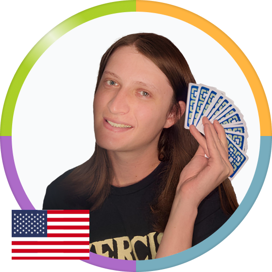 I started playing at 14 to surprise my grandma after a vacation. She was thrilled, and we played together all summer. Later, I found V8mama’s Twitch community, where I fell in love with modern Bridge. It was so fun, I knew I’d never stop!