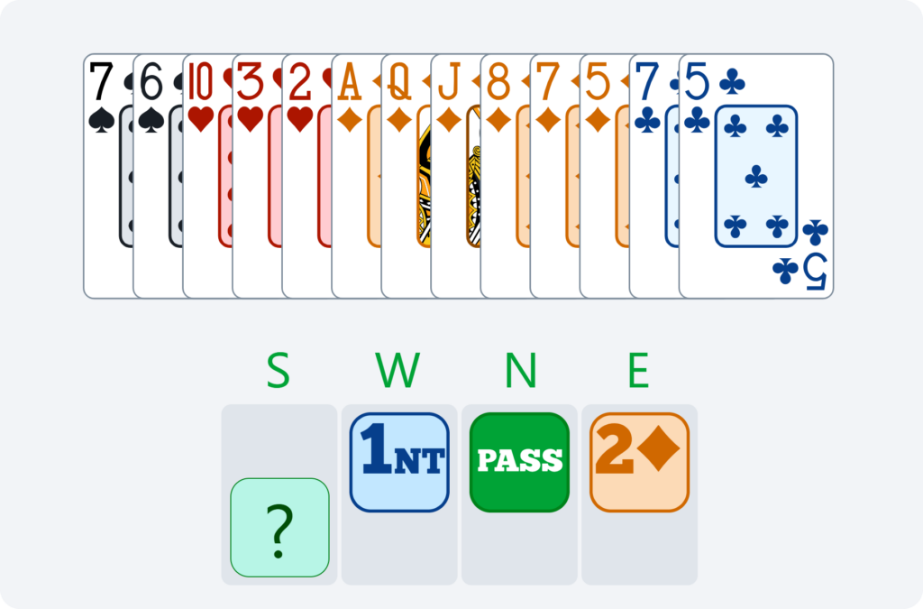 Which means that here we have the possibility to double to show diamonds, so partner will know what to lead.