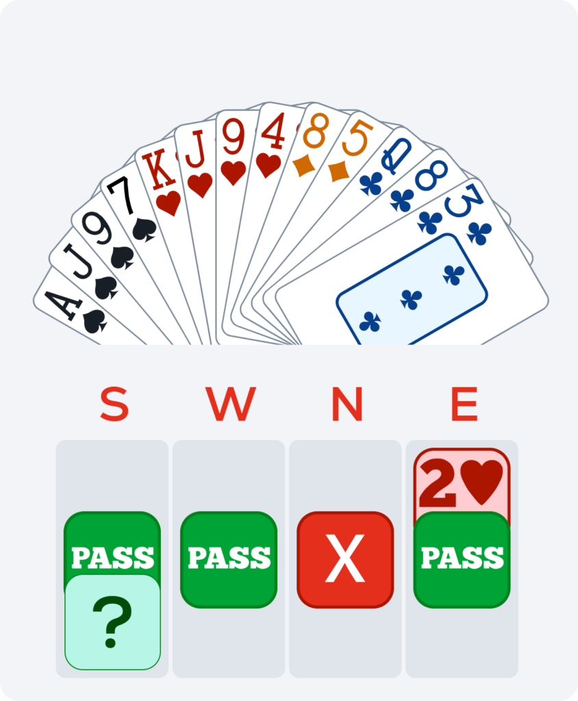 Here you are faced with a difficult decision after partner’s take-out double.