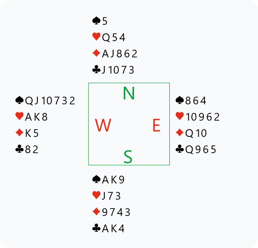 A nice psychological play, right? Knowing that my contract was doomed to go down, I deliberately choose to play my weakest suit to confuse the opponents! This technique must be used with caution and only in very specific situations, but honestly, the few times I have used it, it has worked — and I must admit, these are exactly the kind of plays I love.