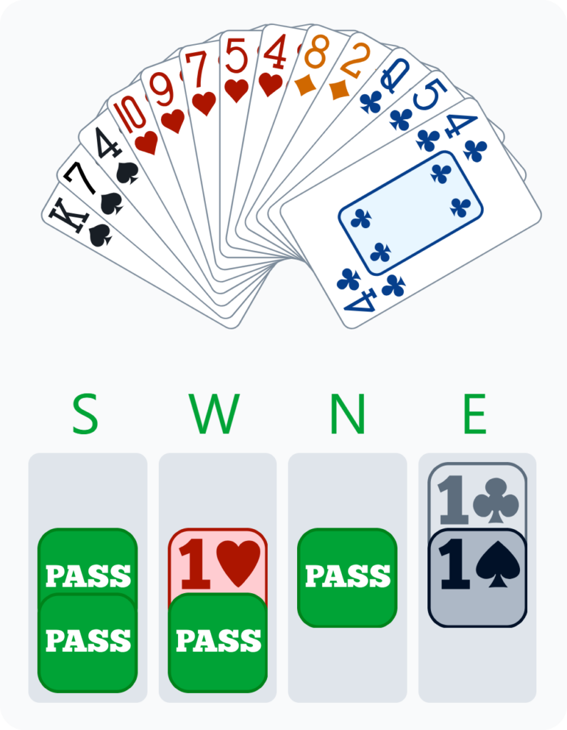 Furthermore, the responder has many options. They can support the opener in one of their two suits with a fit of at least four cards. They can also repeat their own suit or bid NT. And finally, unlike the popular belief that the 1♠ bid is forcing, they can also pass.