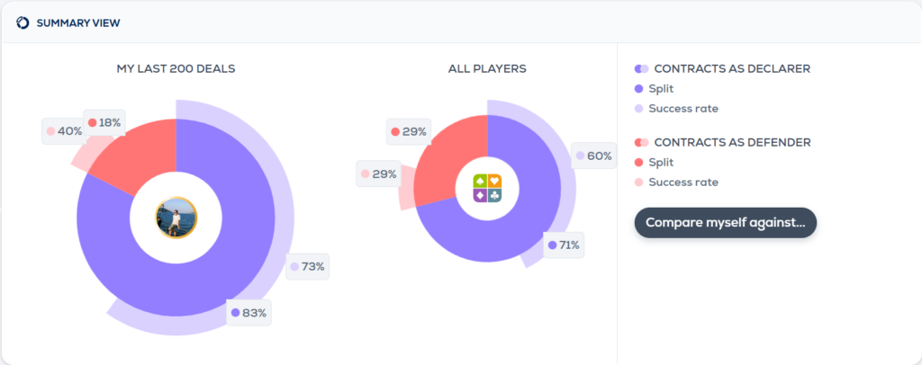 I love the statistics page, where you can delve in and see which areas you do well in and where you need to improve. Is it slams? Is it defending NT? What about when you’re redoubled?