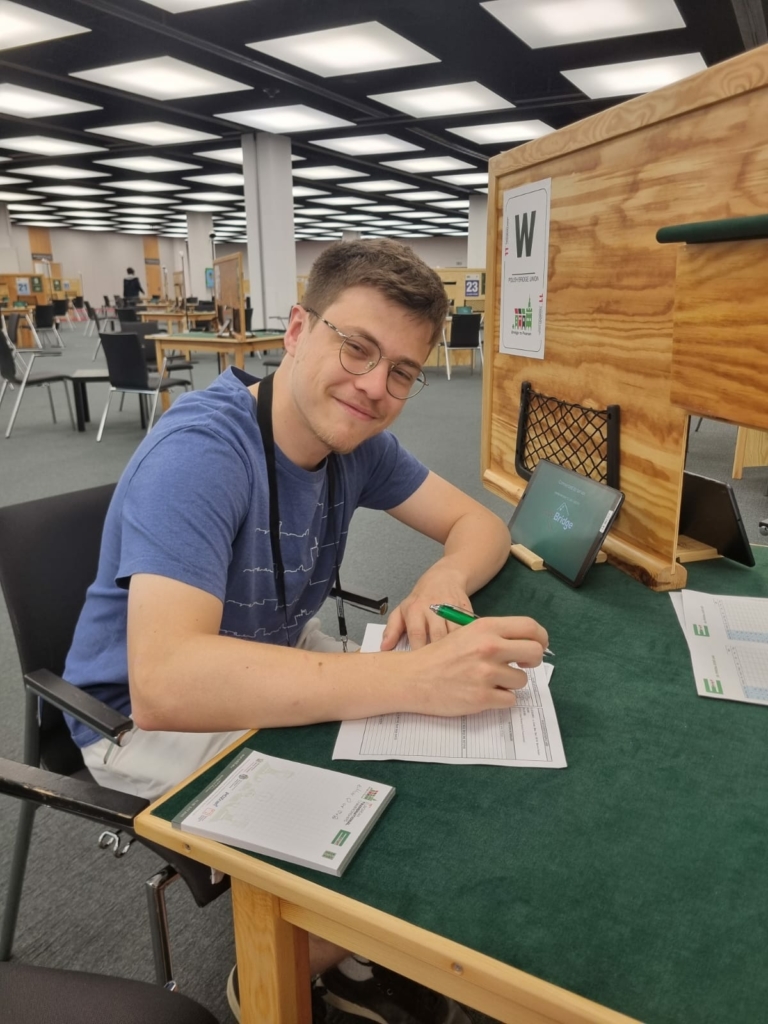 For the last set, this time I was sitting next to Andrea, whom I tried to buy off with a few kinders. 🙃 We won this round of 32 by 23 IMPs. We were happy with our performance!