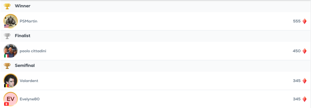 As a reminder, this format allows you to compare your score with that of a star player over 10 deals. If you perform better, you win back your stake in Diamonds.