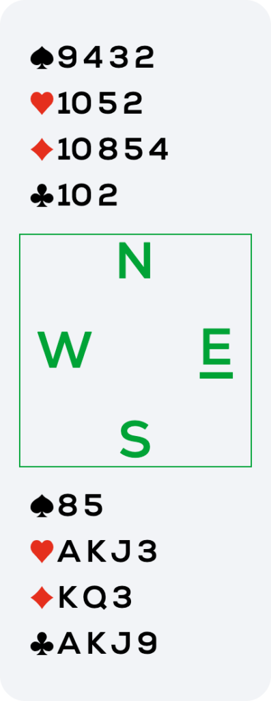 You have only four winners with ace-king in hearts and ace-king in clubs. With zero point in partner’s hand you’ll have to play very carefully. The first thing is to make the most out of the lead: which card do you play from dummy?