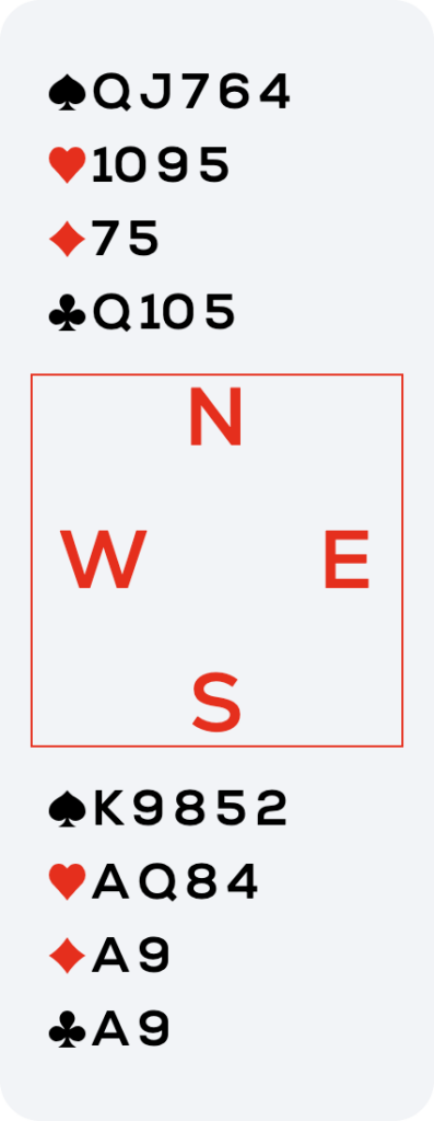 Next, I led the ♠8 to West’s ♠A (East followed), and West switched to the ♥3. I played dummy’s 10, East played the ♥K, and I won with the ♥A. I then drew the remaining trump with dummy’s ♠Q, on which West discarded the ♥2. It was time to start counting.
