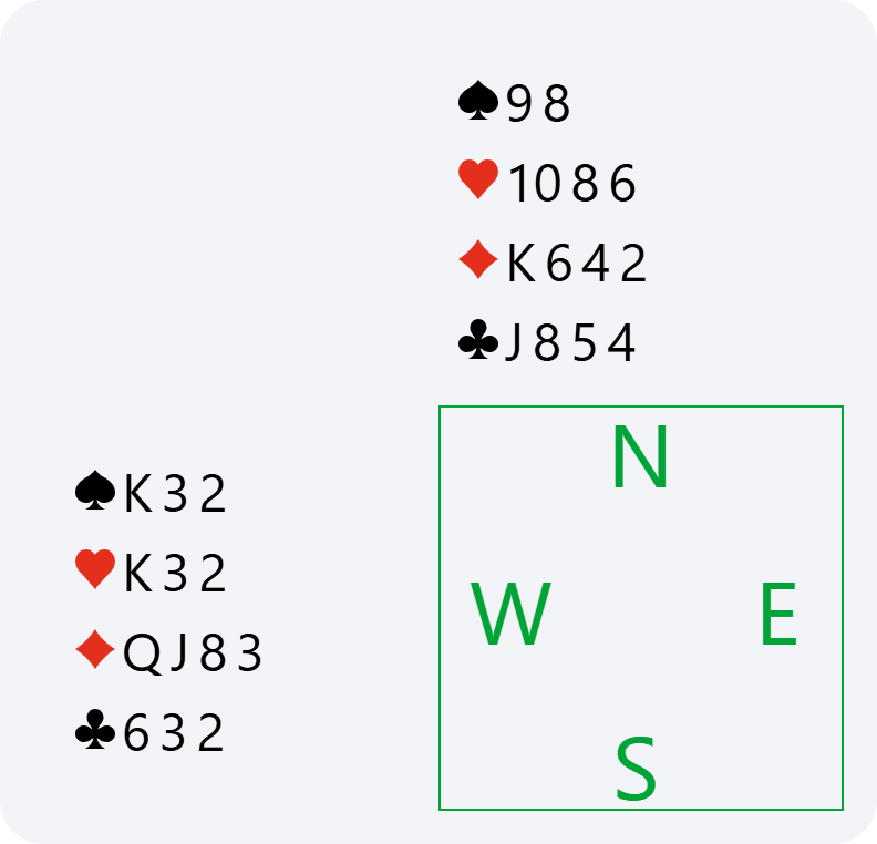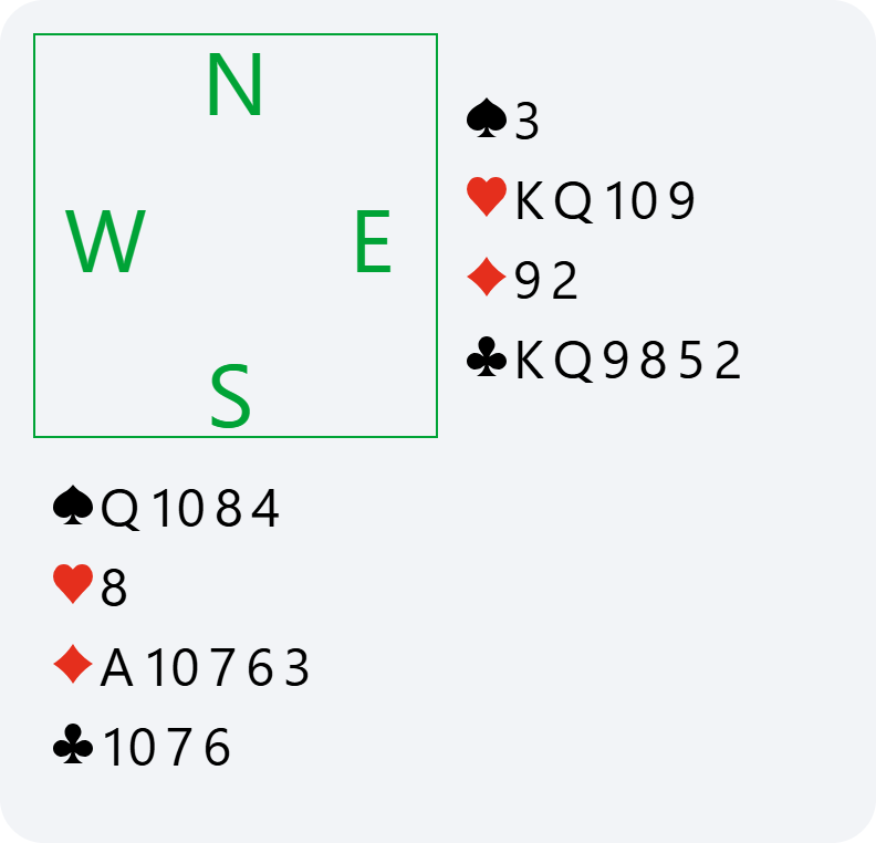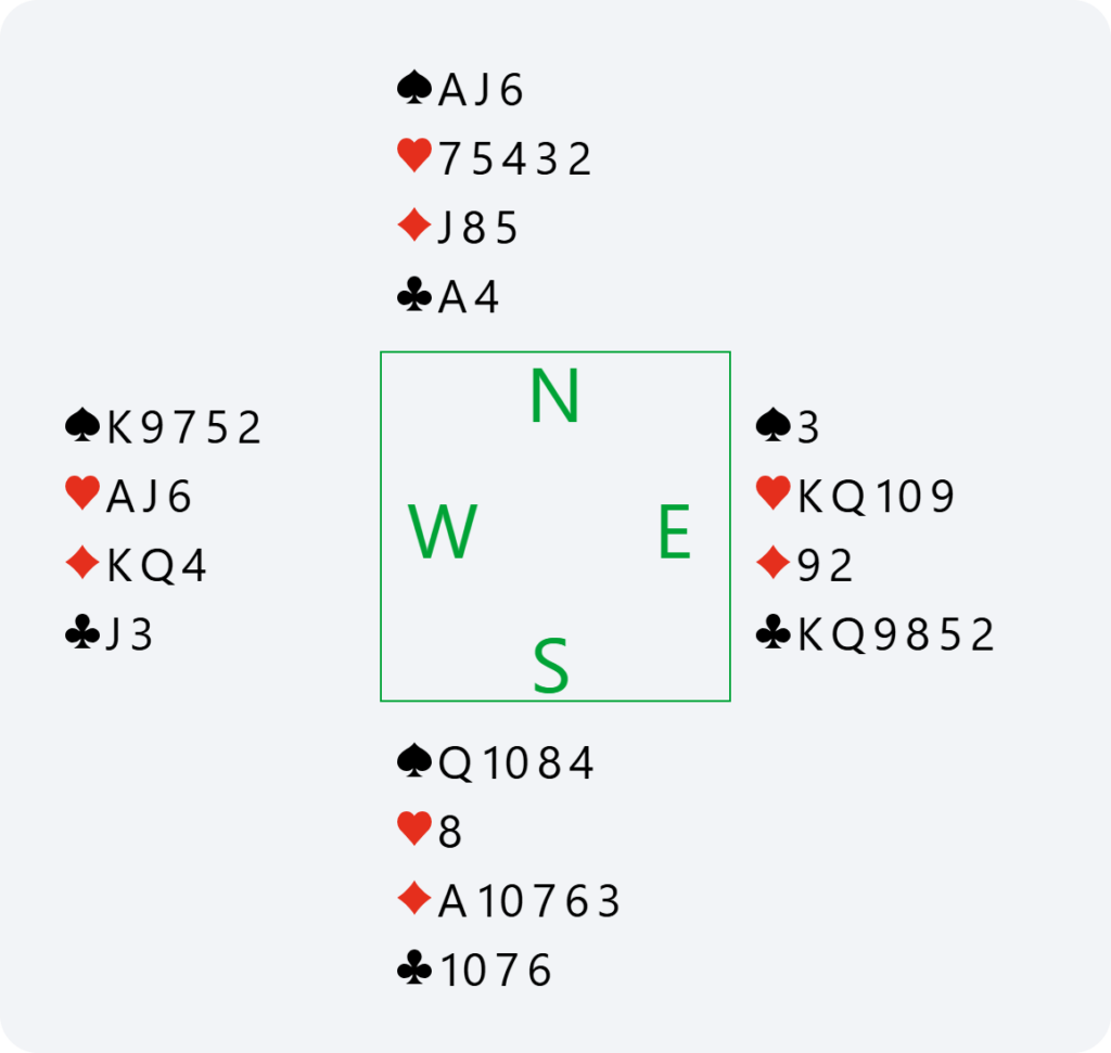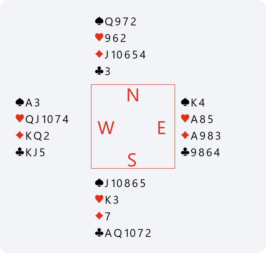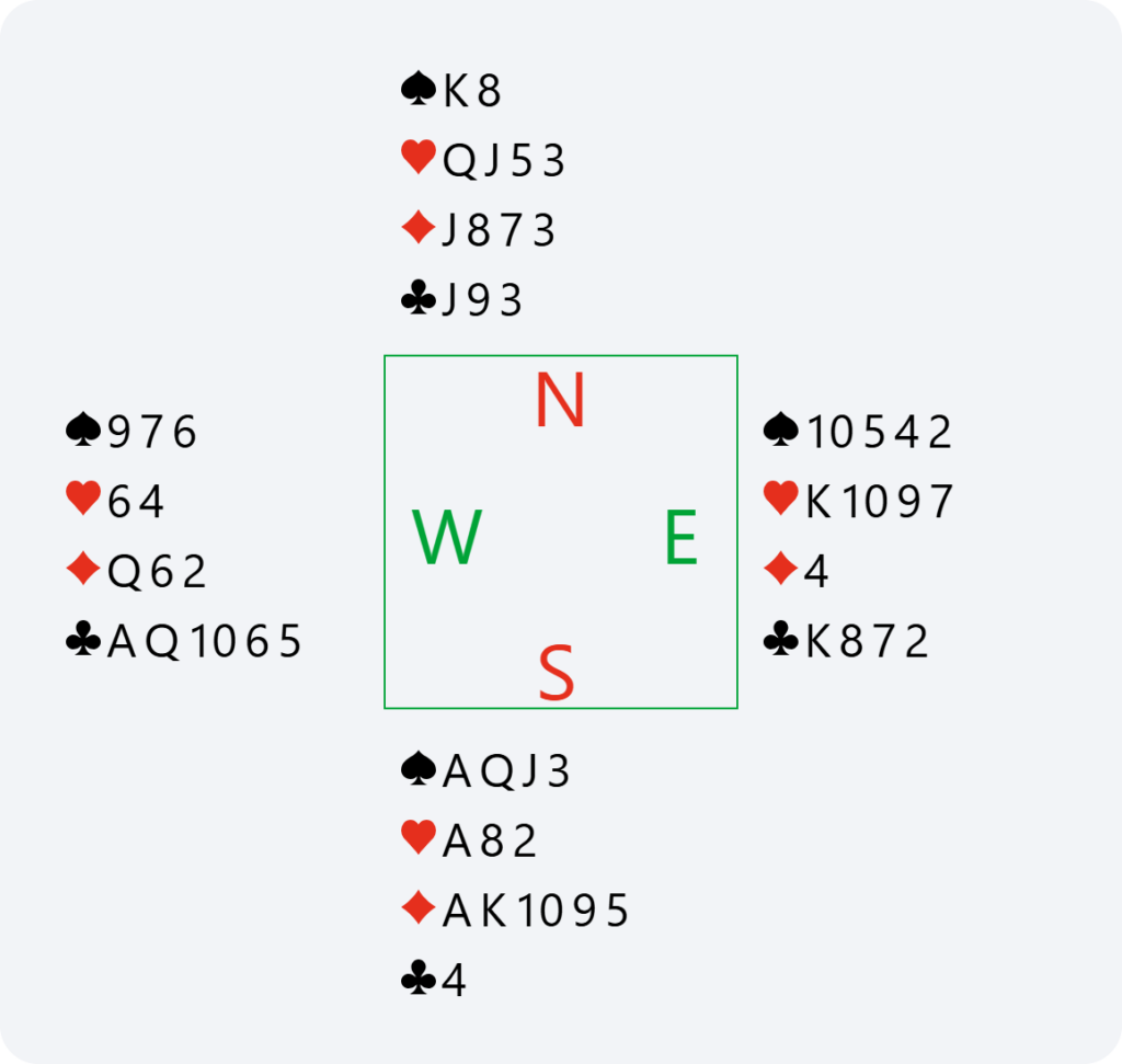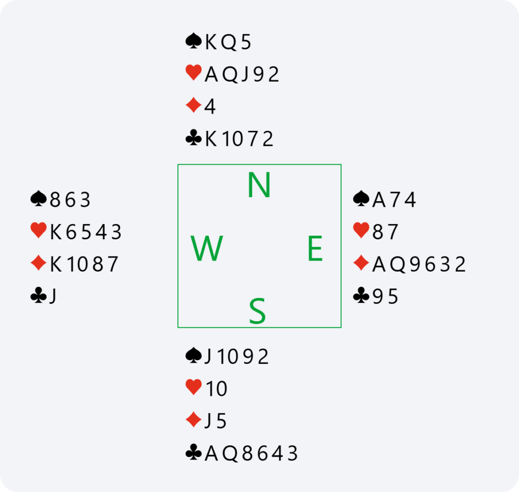 Here, if North passes 2♦, we have no reason to bid again in South. We have already announced our hand, and it would become dangerous to continue bidding without any guaranteed fit. This is why doubling 2♦ is very useful for saying “show your best major” and avoiding the 2♦ contract or having to guess your partner’s major.
