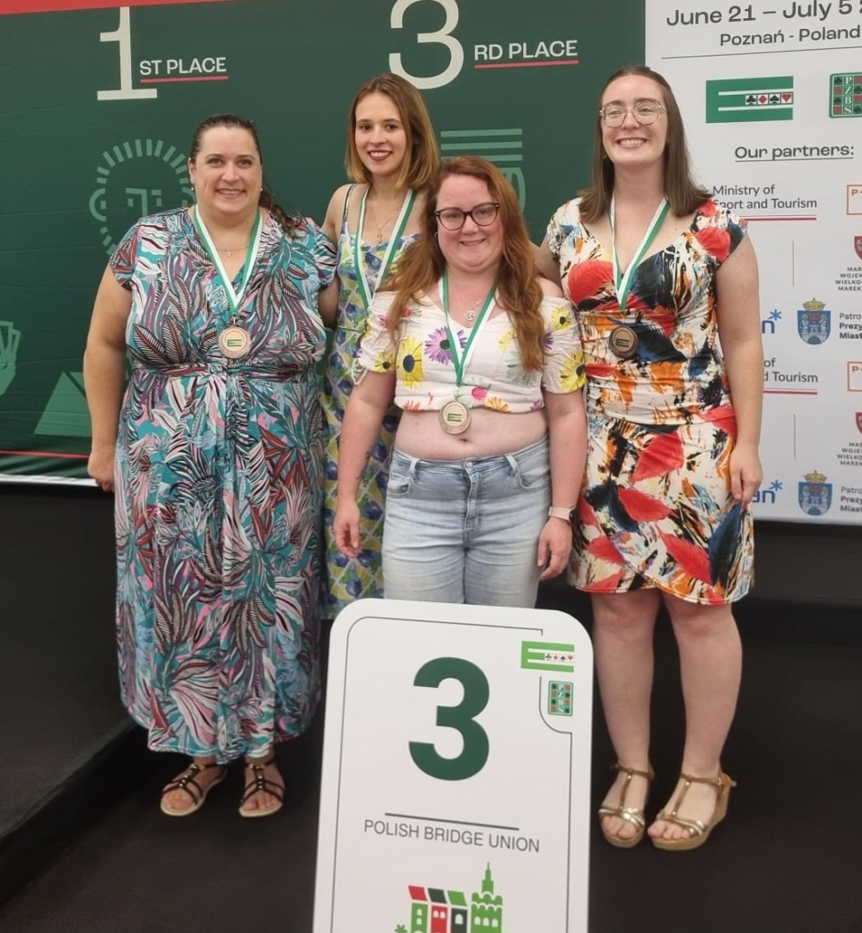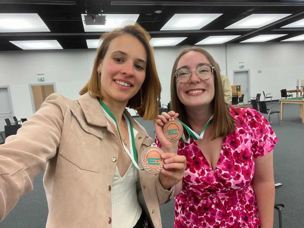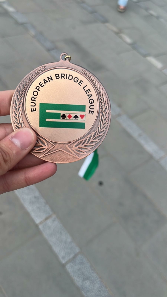 After the 46 deals that made up the final, we finished on the bottom step of the podium, despite a rather annoying carry-over (without it, we would have been second, one point behind the winners–a French team).
