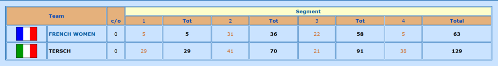 We were teaming up with Carole and Anne-Laure, our regular teammates in the Women’s team. The good thing is that the format is the same as for the upcoming World Championships: you have to finish in the top eight in the qualifiers to advance to the KO stage. The better placed we are, the better because the top teams get to choose their opponents.