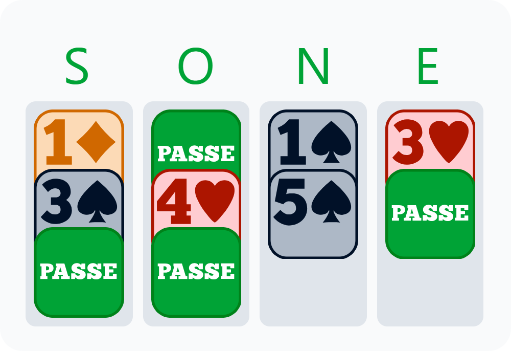 Sud se devait d’annoncer le fit avant l’enchère de 4♥, attendue en Ouest. L’enchère de 3♠ peut être produite par n’importe quelle main de première zone ou avec une mauvaise main de deuxième zone.