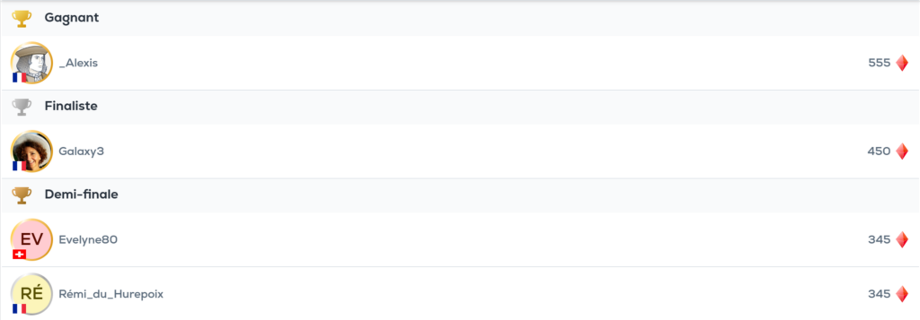 Côté Bridge Cup, janvier a offert un scénario à la fois symbolique… et spectaculaire. Le vainqueur de l’édition est _Alexis, alias Alexis Maugat.