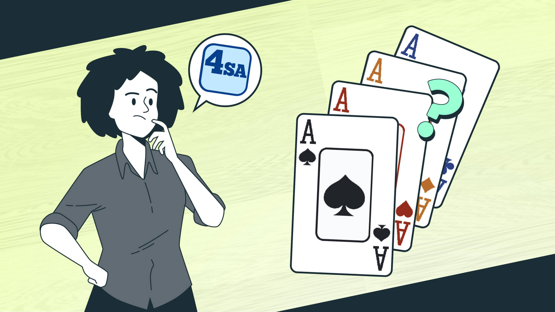 Si, notamment dans une situation de fit mineur, la réponse de votre partenaire vous apprend qu’il manque deux clés, le seul contrat “raisonnable” est alors 5 Sans-Atout. Il faudra dire 5♠ après sa réponse, ce qui lui demande conventionnellement de dire 5SA et vous vous arrêterez là.