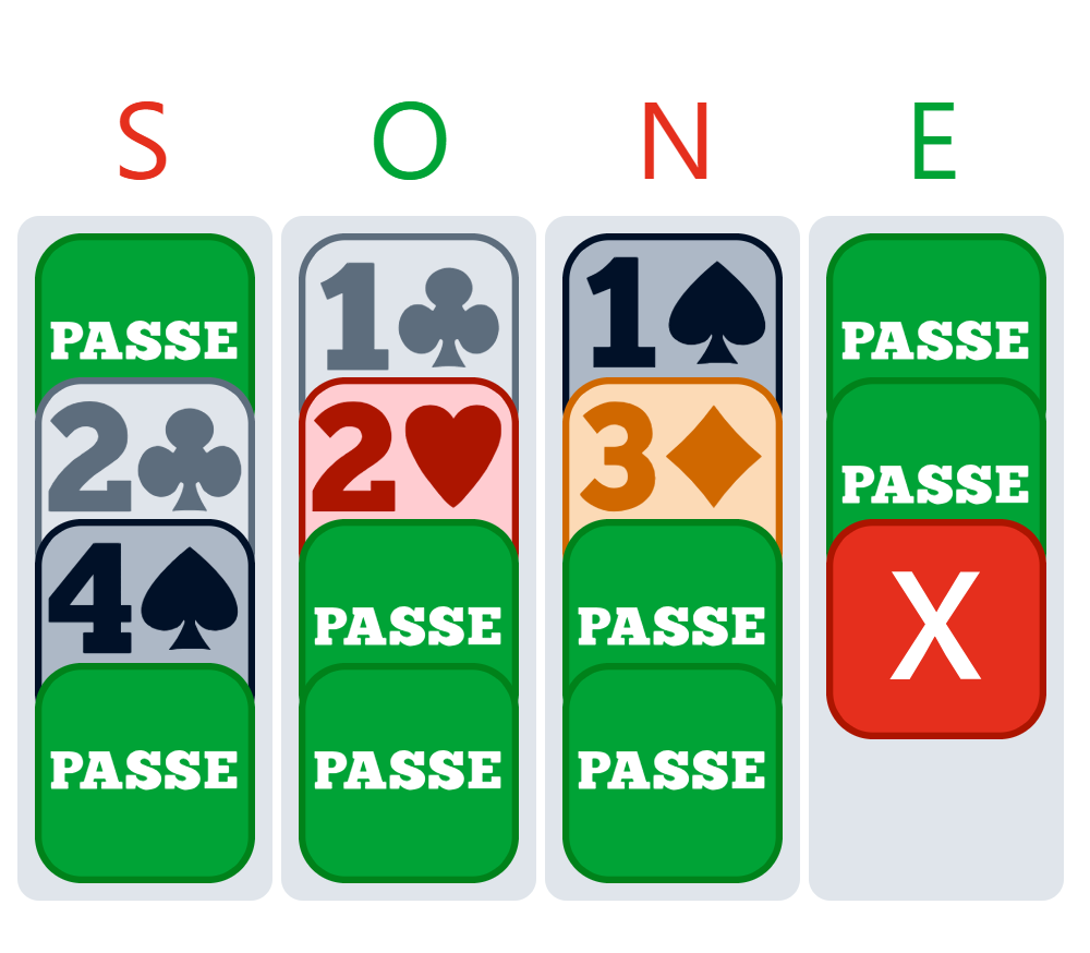 Le déclarant a gagné en main et a joué un petit Cœur, que j’ai pris de la Dame. J’ai rejoué un petit Trèfle contre le 10 de Niels et le Roi du déclarant. Le déclarant a ensuite encaissé l’As de Cœur et joué un autre petit Cœur, que j’ai pris du 7.