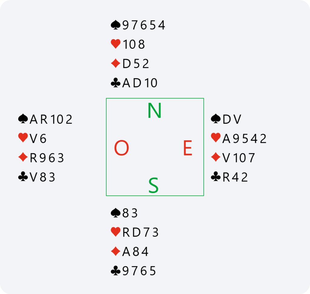 Notre défense était solide, mais le déclarant a négligé la possibilité qu’un adversaire ait pu commencer avec 10x de Cœur. A 2SA, cela aurait seulement fait une de chute. Ce n’est pas la plus grosse erreur dans une compétition par équipe, mais c’est quand même une petite chance manquée.