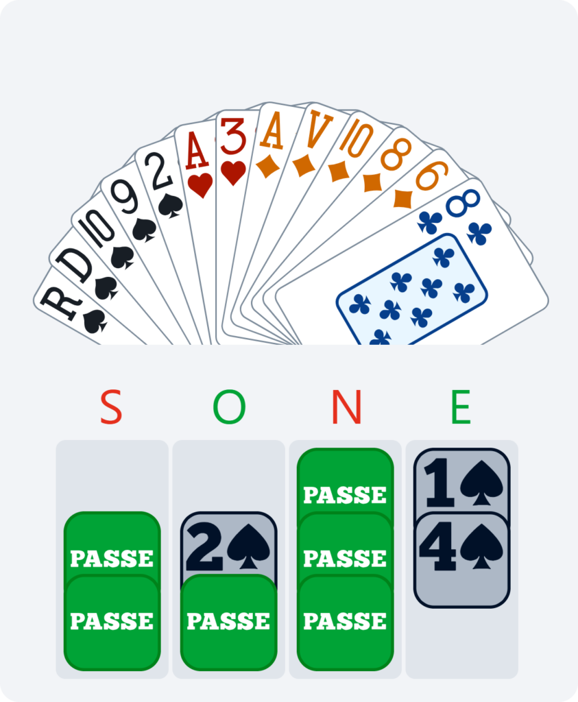 3♥ -4, +200 pour nous. Mon adversaire a demandé pourquoi je n’avais pas contré 😂