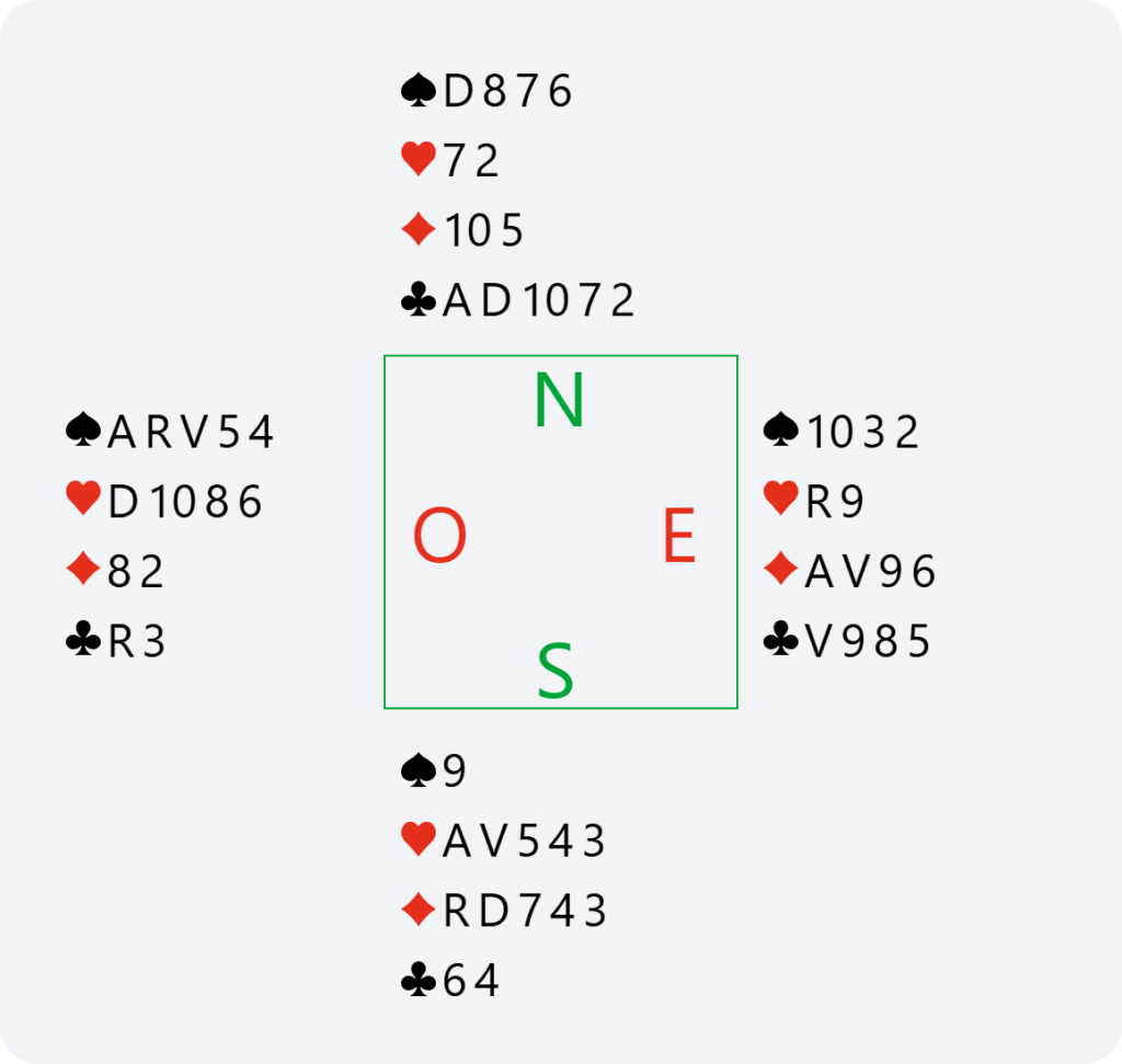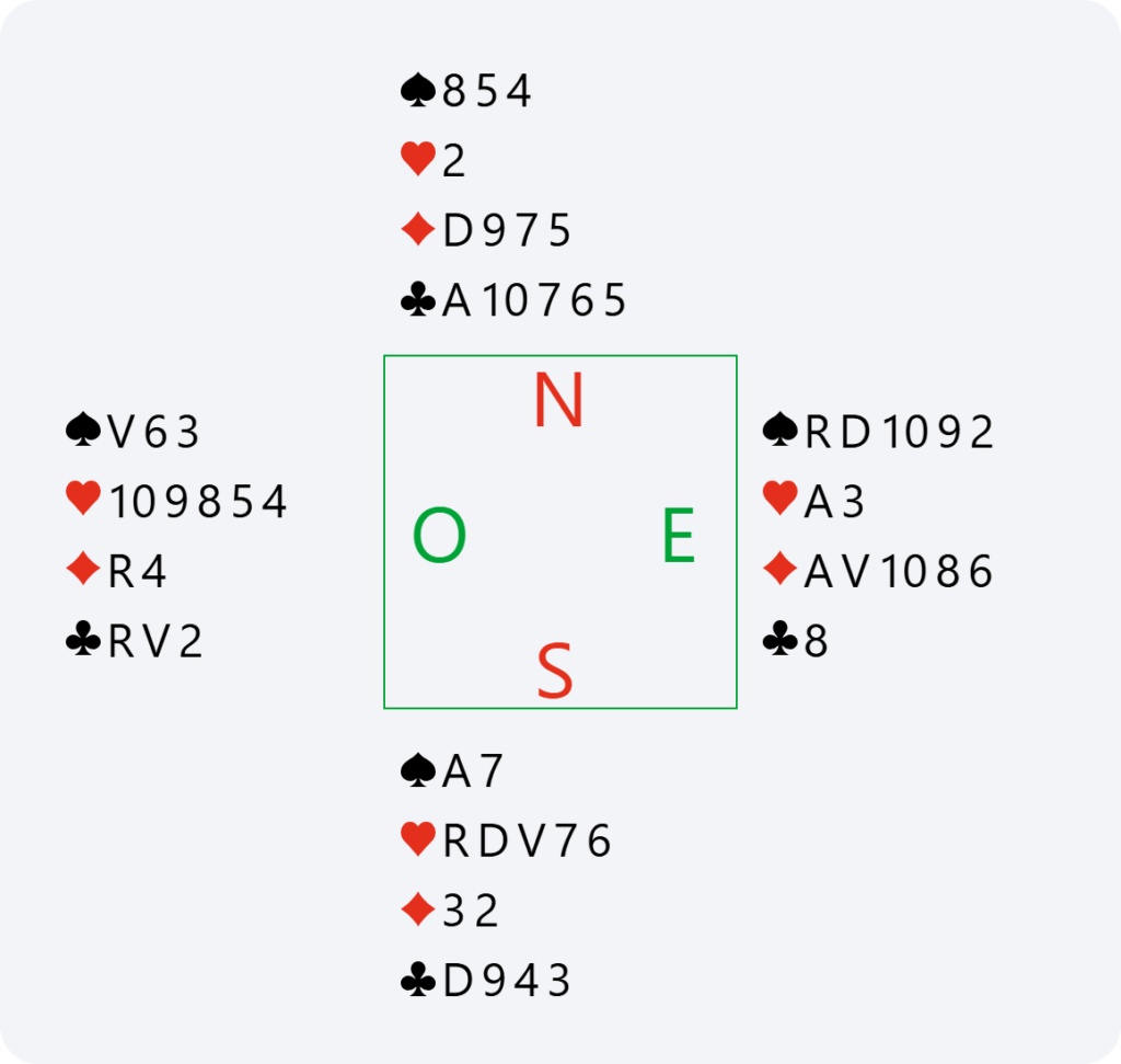 En élaborant le plan de jeu, la première question qui se pose est de savoir ce qu’il faut faire des Carreaux. Avec une perdante à Pique, à Cœur et à Trèfle, je devais faire tous les Carreaux.