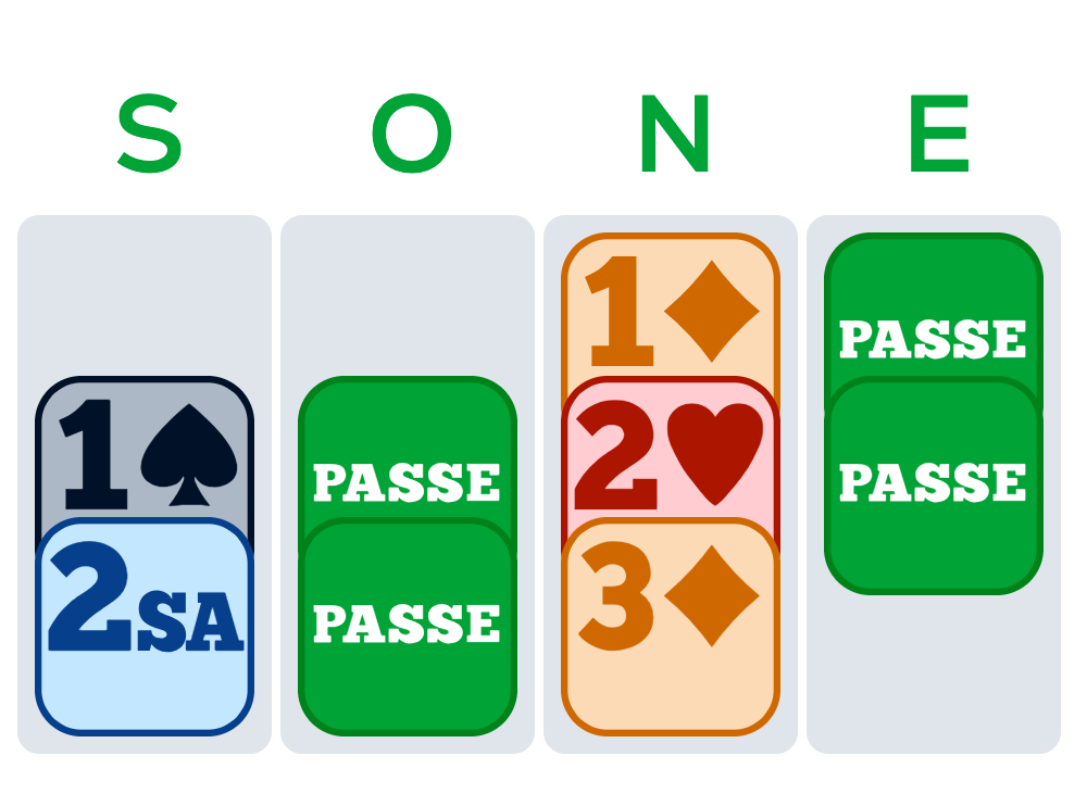 Nord : «Tes deux Rois rouges dans mon bicolore valent une fortune. Je ne suis pas d’accord pour répondre 2SA, enchère bien connue comme “modérateur”.»