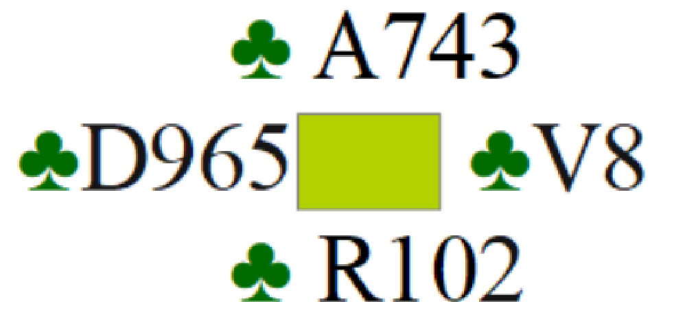 Réponse : Oui. On joue petit trèfle vers le 10 qui pousse à la Dame. On tire le Roi qui écrase le Valet. La fourchette A7 du mort permet finalement de prendre 96 d’Ouest en impasse.