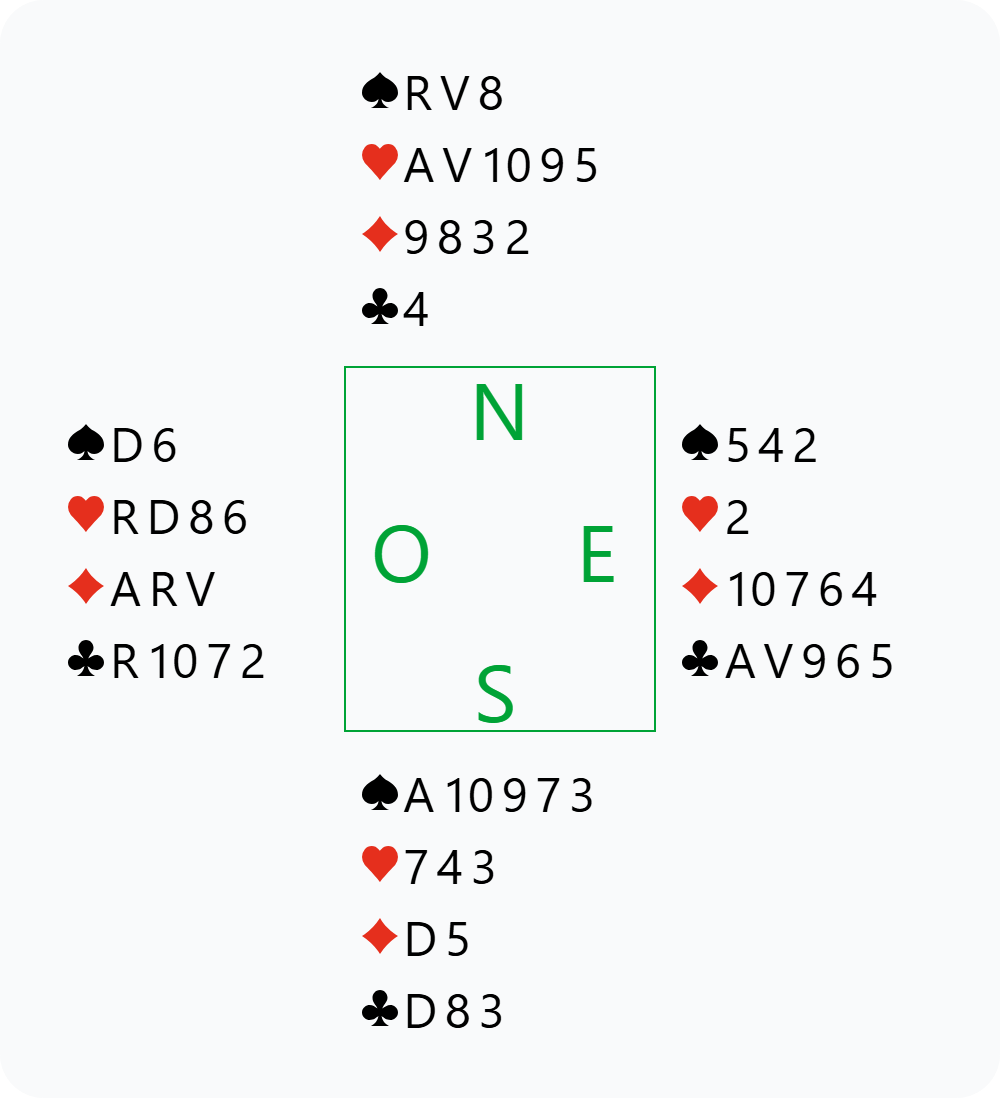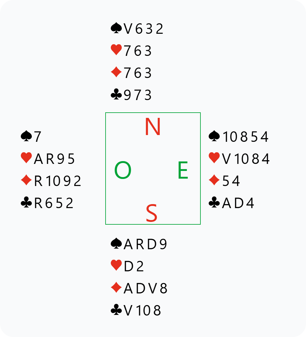 Nous avons commencé la journée en jouant contre nos concurrents directs : la paire avec laquelle nous étions à égalité pour la première place. Sur la troisième donne, Abragi a ramassé :