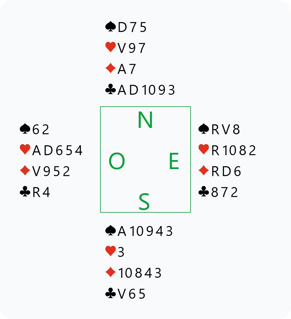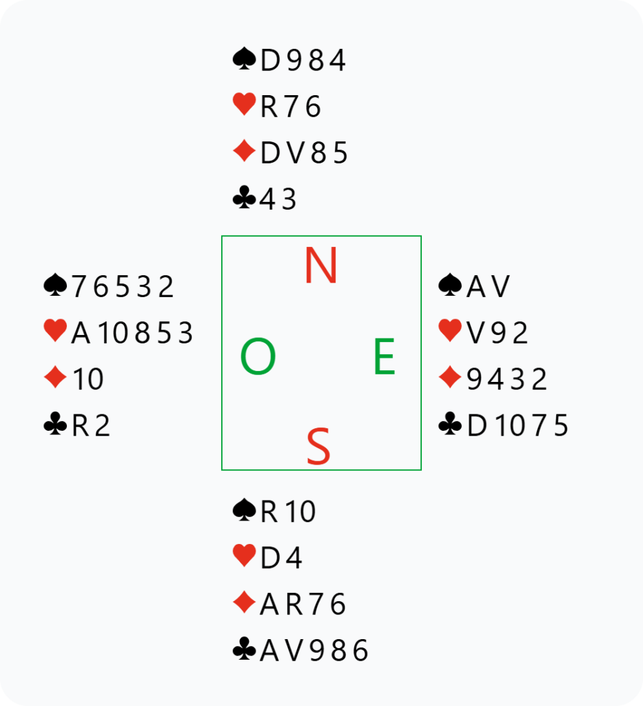 D’un autre côté, nous pouvons tout à fait vouloir jouer à Pique, même avec un partage 4-1 en défense. Andreas avait cette main et a envisagé plusieurs options. Avec le recul, il s’en veut de ne pas avoir trouvé l’enchère gagnante.