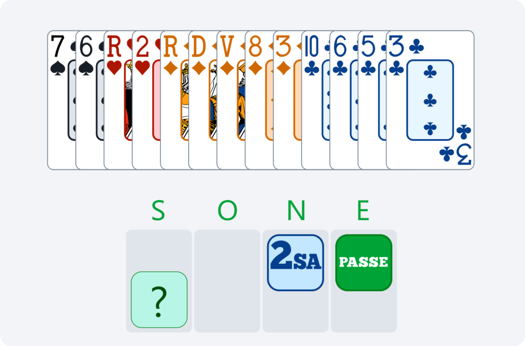 Mais si Nord avait eu à la fois ARD10x de Pique et Roi-Dame troisièmes à Trèfle, il aurait sûrement ouvert de 1SA, donc c’est improbable.