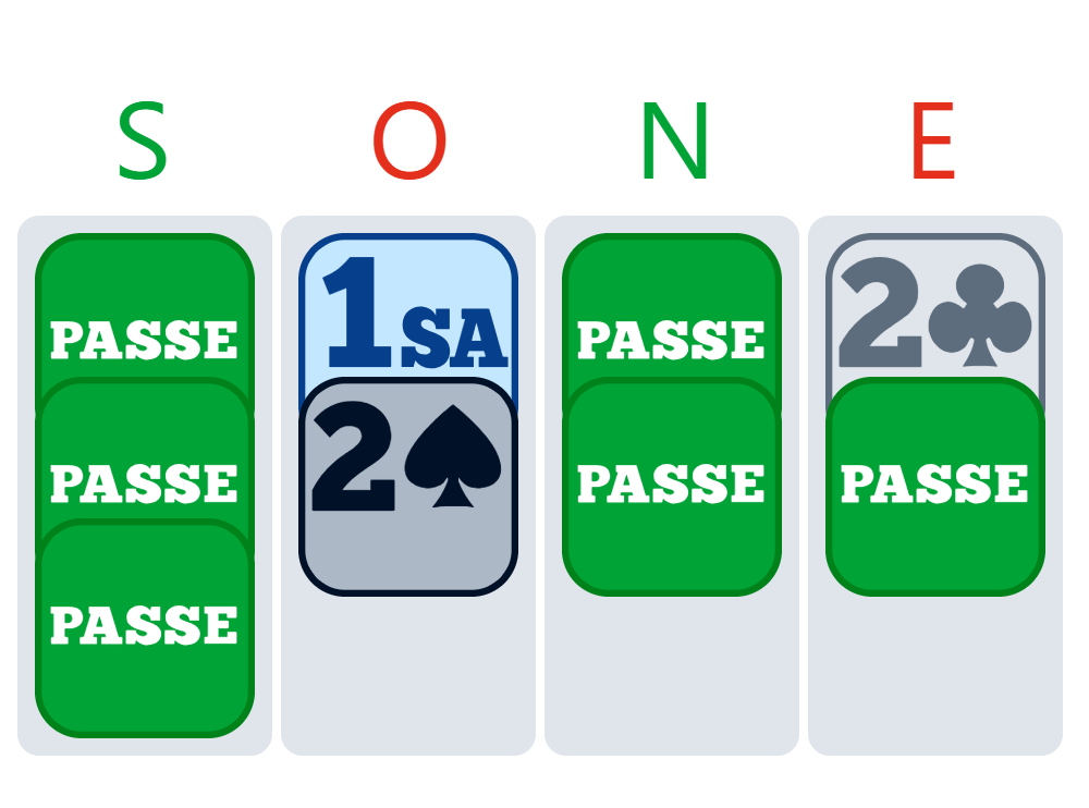 À l’autre table, Andreas passe simplement sur l’ouverture de 1SA. Il ne veut pas que les adversaires s’échappent du contrat idéal à défendre.