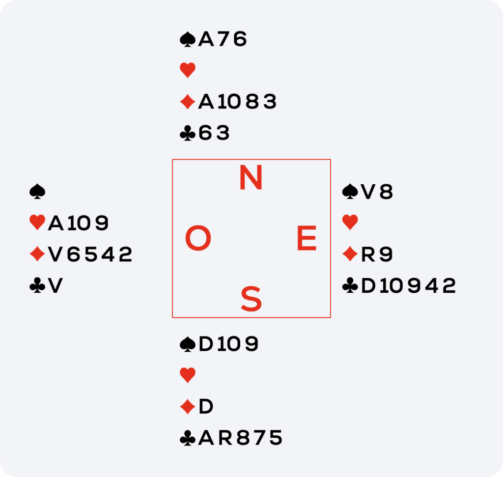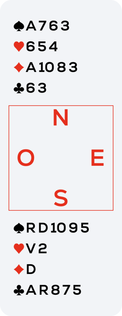 J’ai donc joué un gros Trèfle. Les deux adversaires ont fourni, Ouest jouant le Valet. J’ai alors joué l’autre gros Trèfle. Ouest a défaussé le 9♥. J’avais raison ! La distribution d’Ouest était 1-6-5-1. J’ai continué à faire une double coupe pour le reste et j’ai terminé avec onze levées.
