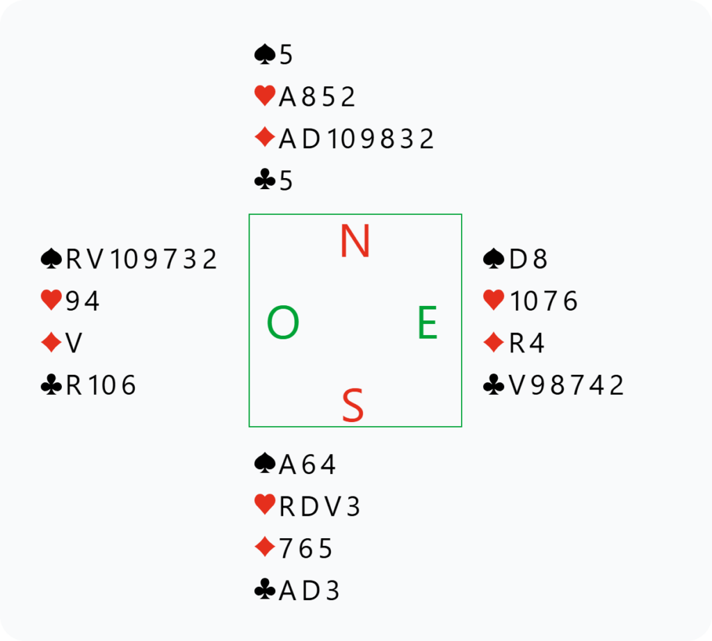 Elle a choisi de dire 5♦, pour décrire son jeu très distribué : il m’a permis en Sud de visualiser cette longue dans la couleur et d’appeler le petit chelem.