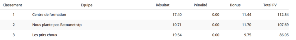 Le concept : on joue douze donnes contre une paire dans une ligne, puis on fait les points avec les trois autres paires qui étaient dans l’autre ligne que la nôtre. On a alors une moyenne de notre valeur en tant que coéquipières sur chaque match.