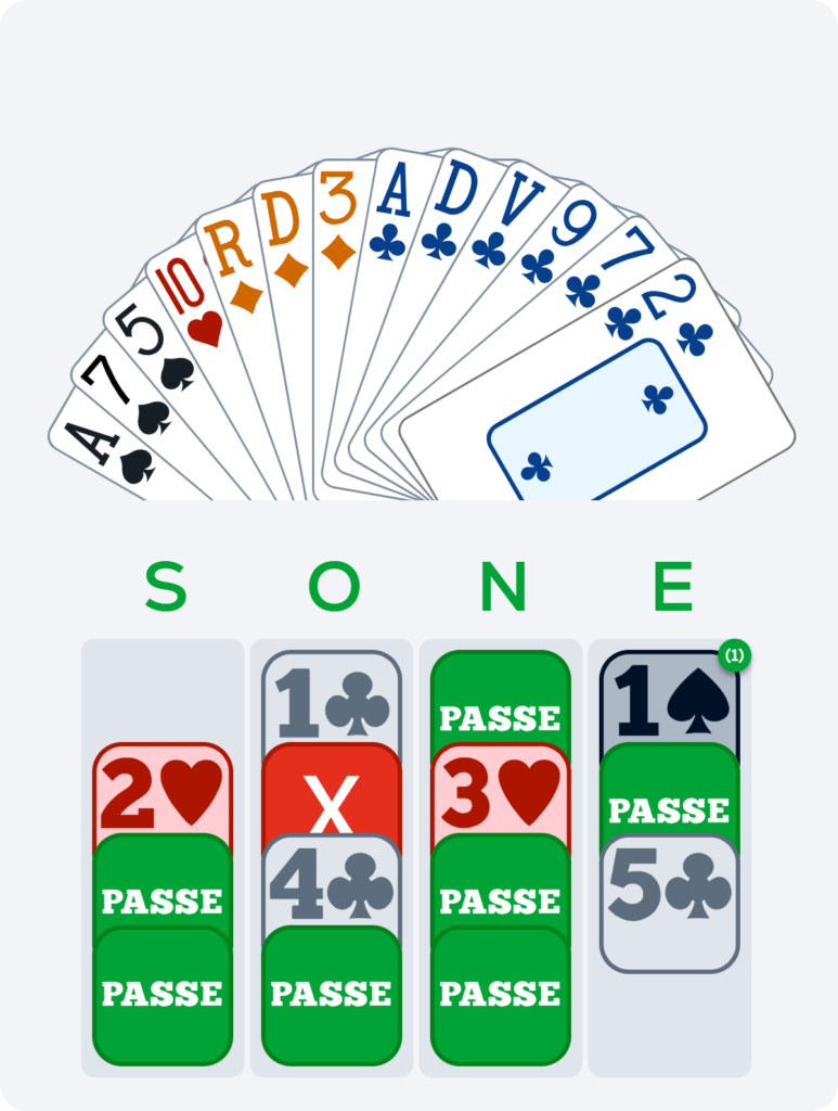 Nous avons également joué une donne amusante. Les enchères se sont déroulées comme suit :