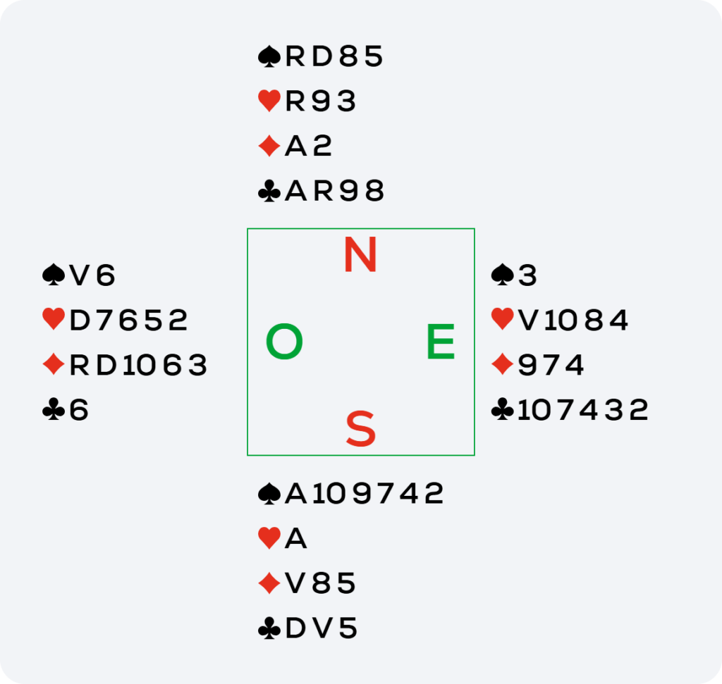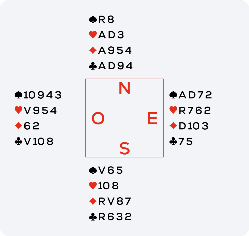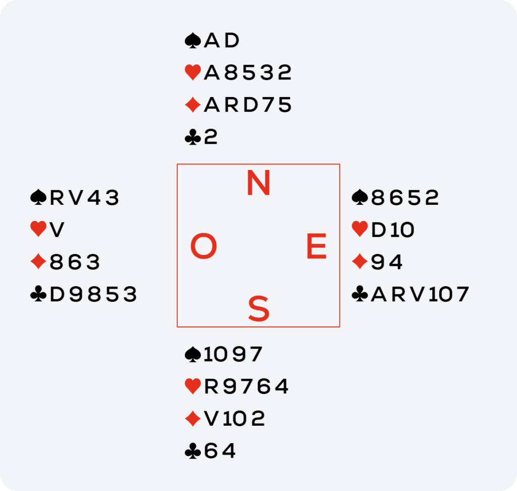 La donne devient encore plus belle alors : il faut faire le Roi de Carreau et jouer Trèfle le 8 pour se créer deux remontées, l’une pour rejouer vers la Dame de Carreau et l’autre pour encaisser le 4e carreau affranchi. Faire l’impasse au 10 pour se créer une deuxième remontée s’appelle une impasse d’Oslo 🙂