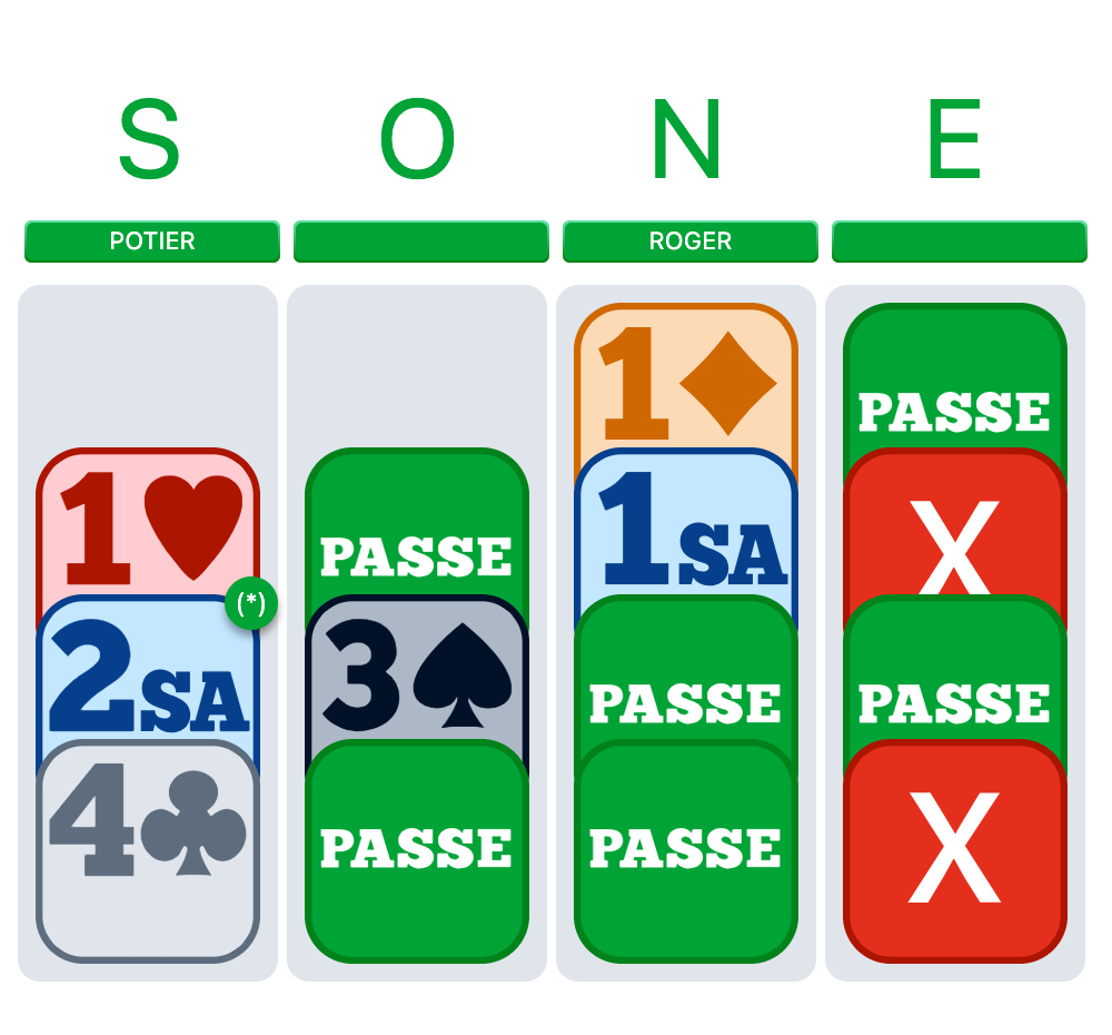 (*) Texas pour les Trèfles dans le système de Potier-Roger.
