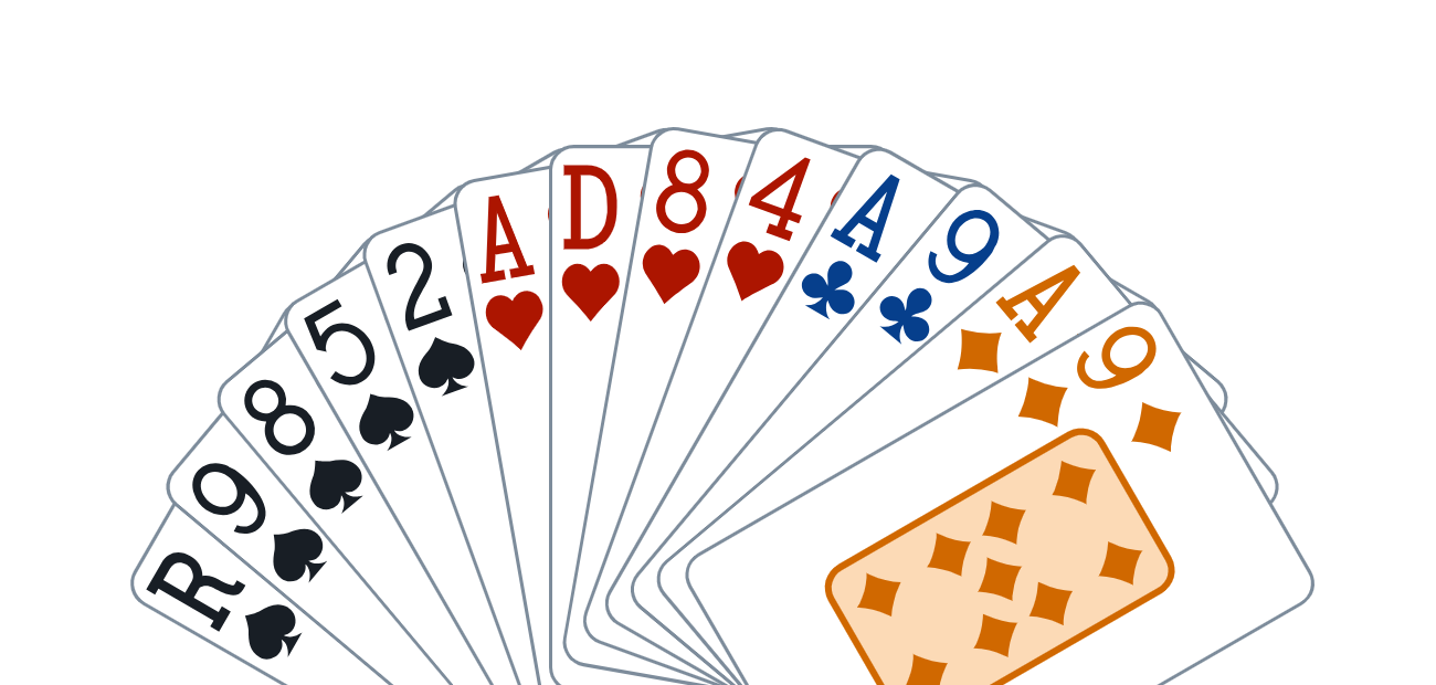 Ensuite, j’ai joué le 8 vers l’A♠ d’Ouest (Est a fourni), et Ouest a changé de couleur en rejouant le 3♥. J’ai joué le 10 au mort, Est a joué le R♥ que j’ai pris de l’As. J’ai ensuite enlevé l’atout restant avec la D♠ du mort et Ouest a défaussé le 2♥. Il était temps de commencer à compter.